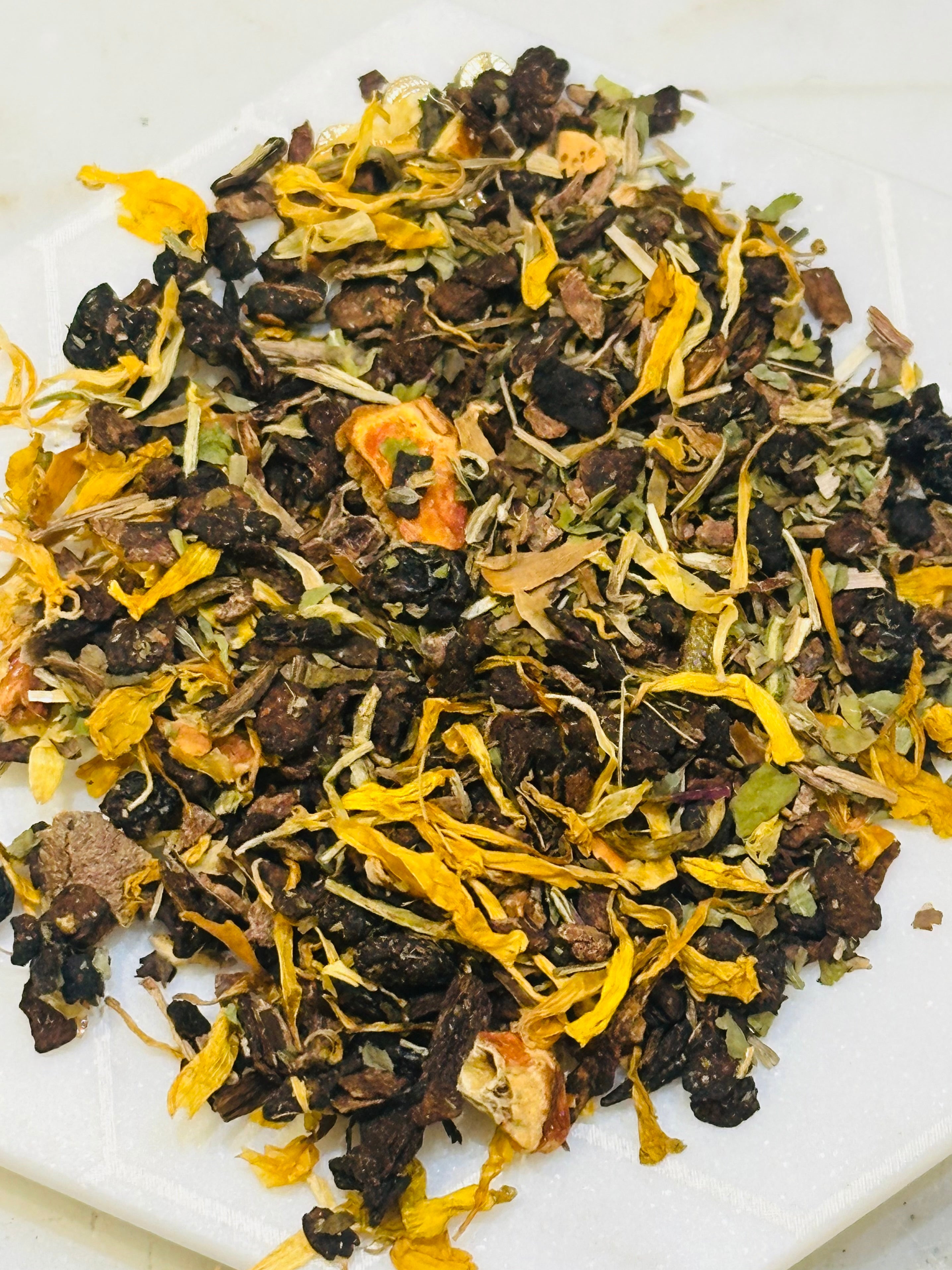 Ingredients: Chicory, Dandelion leaves, Carob, Currants, Bael nut, Calendula + Marigold petals, Natural flavors.